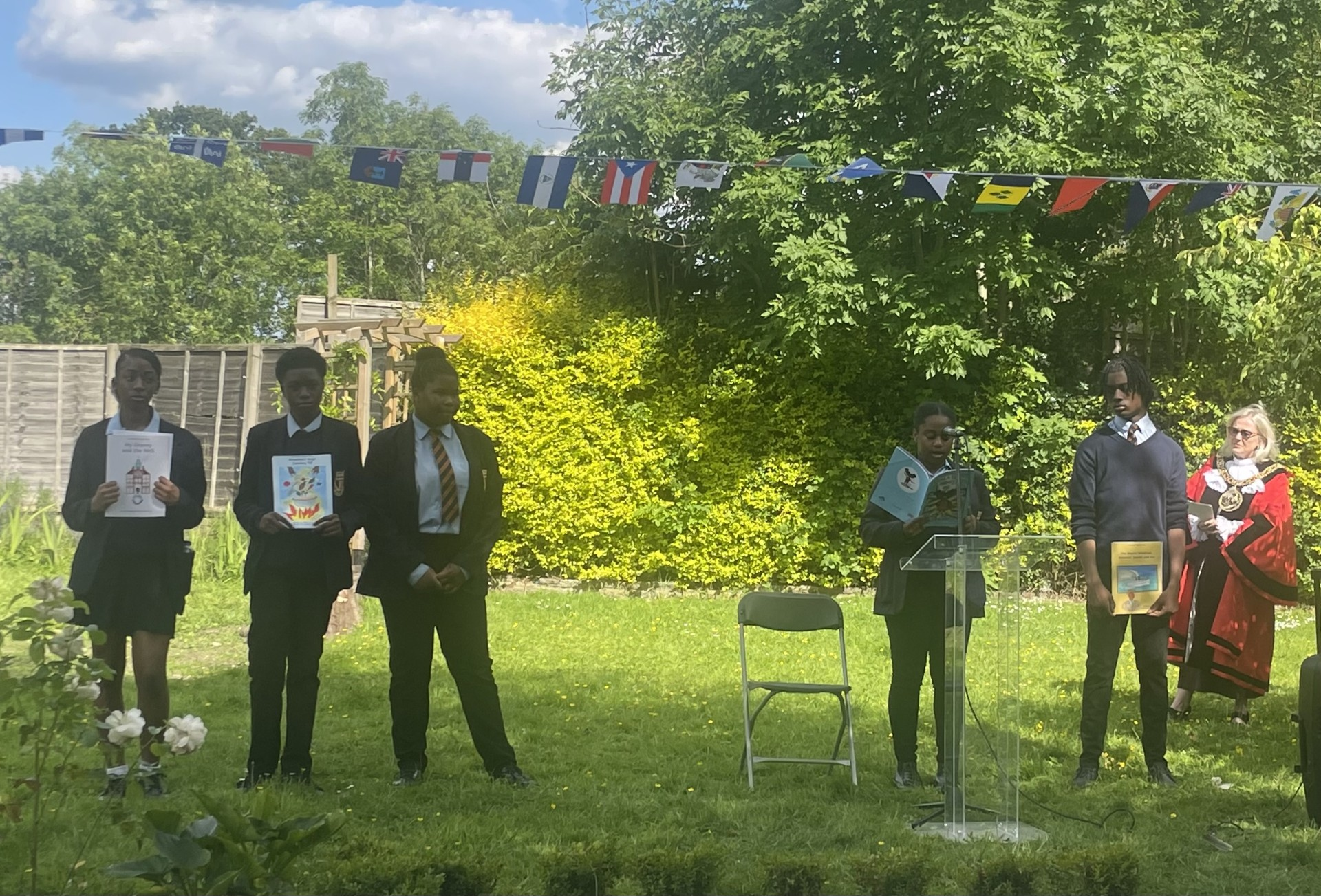 The Mayor of Haringey, Cllr Sue Jameson, invited our pupils to celebrate the anniversary of the Empire Windrush's arrival in Britain by the raising of a flag at George Meehan House today. Our pupils, Diera Robinson , Tallulah Phipps-Paul, Kyjuan Brown, Nevaeh Russell , Arcani Martins, Ruth Tounkam and Priscilla Ndana all performed readings at the event.